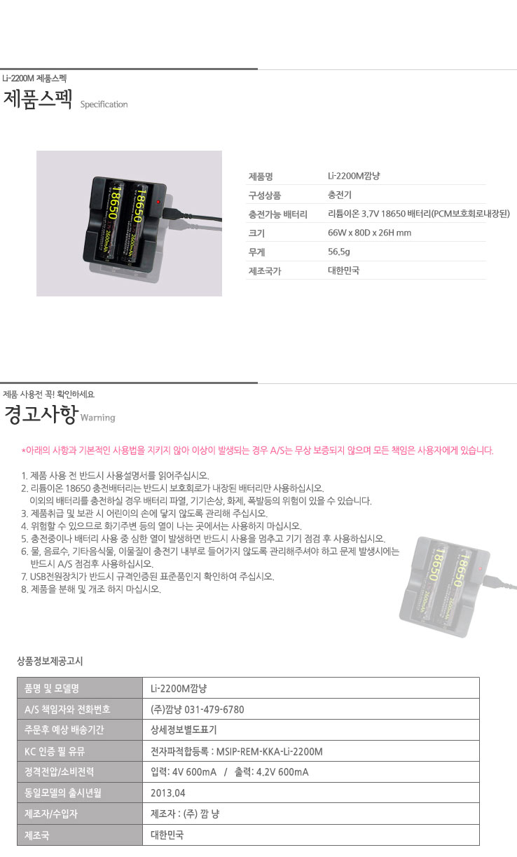 ¸®Æ¬À̿ 18650 4.2V Àü¿ëÃæÀü Ȧ´õ (Li-2200M±ô³É)