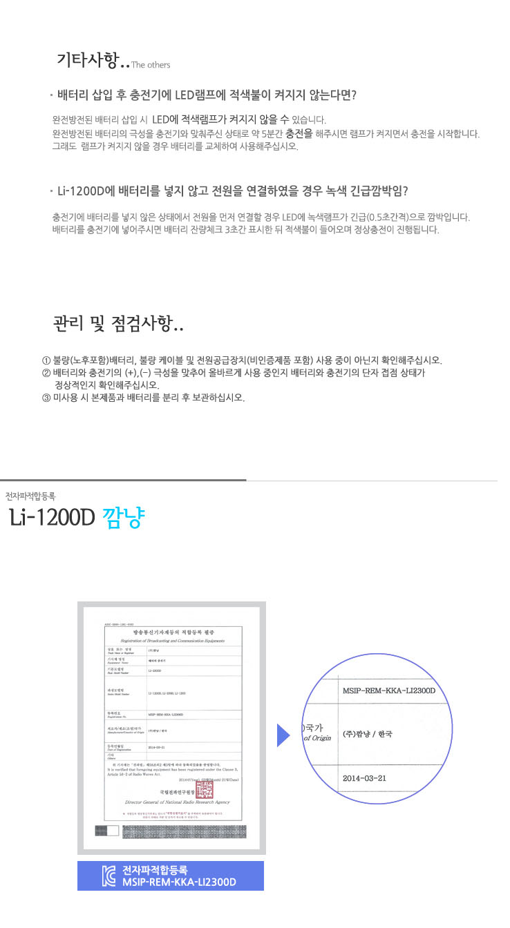 ±ô³É LI-1200D 18650 ÃæÀü±â/º¸Á¶¹èÅ͸® °â¿ë